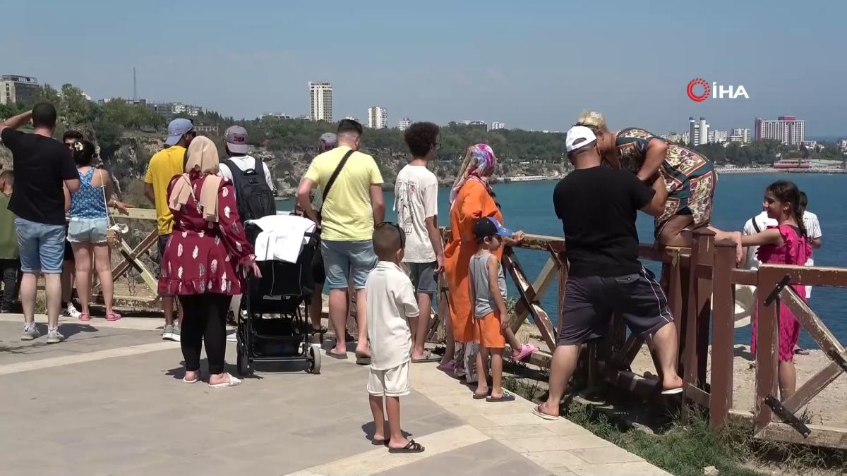 <p>9 günlük Kurban Bayramı tatili nedeniyle Antalya'yı tercih edenler yerli ve yabancı tatilciler bayramın son gününde Konyaaltı Sahili'nin ardından Düden Şelalesi'nin deniz ile buluştuğu noktaya akın etti. Hissedilen nem oranının yüzde 75, hava sıcaklığının ise 39 derece olarak ölçüldüğü kentte <strong>Antalyalılar</strong> ile kente gelen yerli ve yabancı turistler sahillere akın ederken tatilcilerin bir diğer uğrak noktası ise Düden Şelalesi'nin deniz ile buluştuğu nokta oldu. Tatilciler şelalenin eşsiz manzarası eşliğinde fotoğraf çekindi. Bazı turistler yasak olmasına rağmen korkulukları aşarak kayalıkların uç noktasında tehlikeye aldırmadan fotoğraf çekti. Bayramın son gününü balık tutarak geçirmek isteyen bazı vatandaşlarda kayalıklardan aşağıya inerek şelalenin altında balık tuttu.</p>